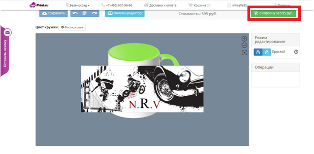 В редакторе можно загружать свои фотографии, узоры, монограммы и надписи и вставлять их в качестве дополнительного к уже выбранному стилю товара. После этого остается только добавить ее в корзину.